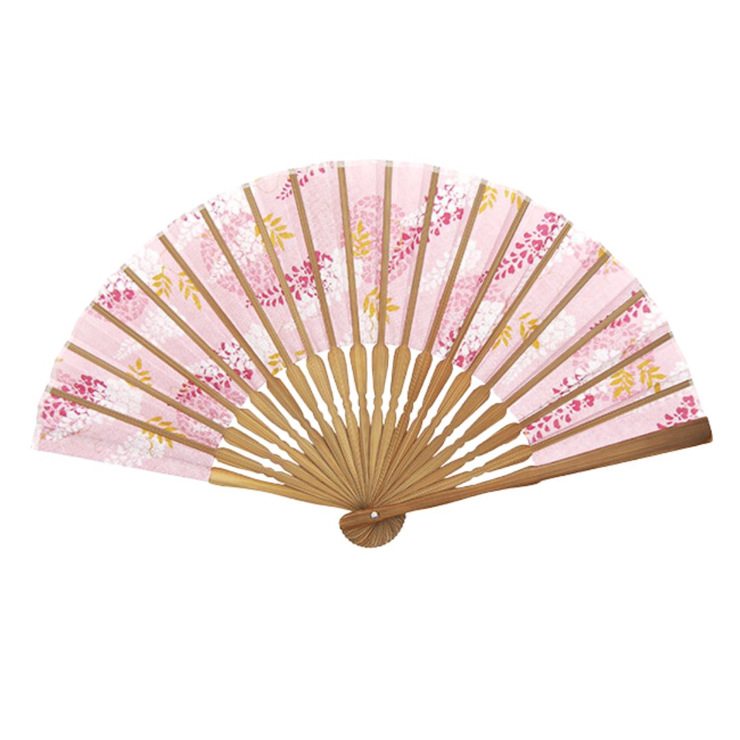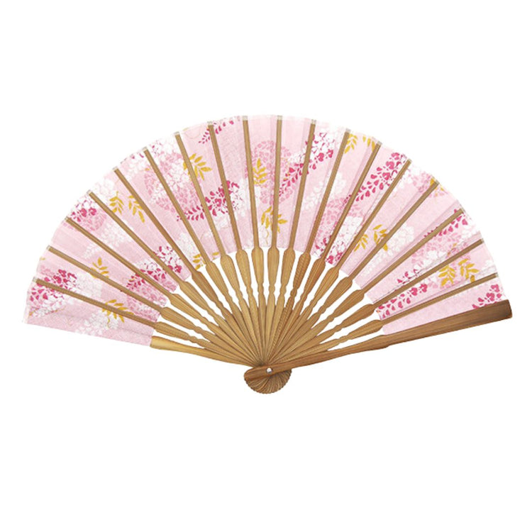 Er zijn waaiers met verschillende motieven, dus er is er vast één die aan jouw smaak voldoet. Deze bijvoorbeeld met blauweregen erop, in Japan Fuji genoemd (niet te verwarren met de iconische vulkaan!).
