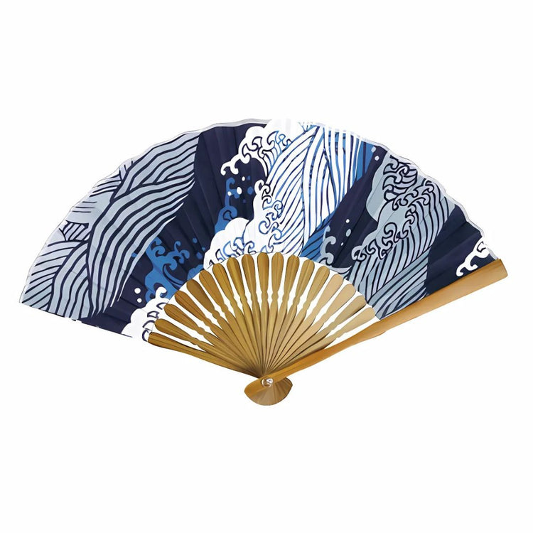 Er zijn waaiers met verschillende motieven, dus er is er vast één die aan jouw smaak voldoet. Wat dacht je van deze waaier met een mooie, typisch Japanse golf erop. Uitgevoerd in mooi indigo blauw.