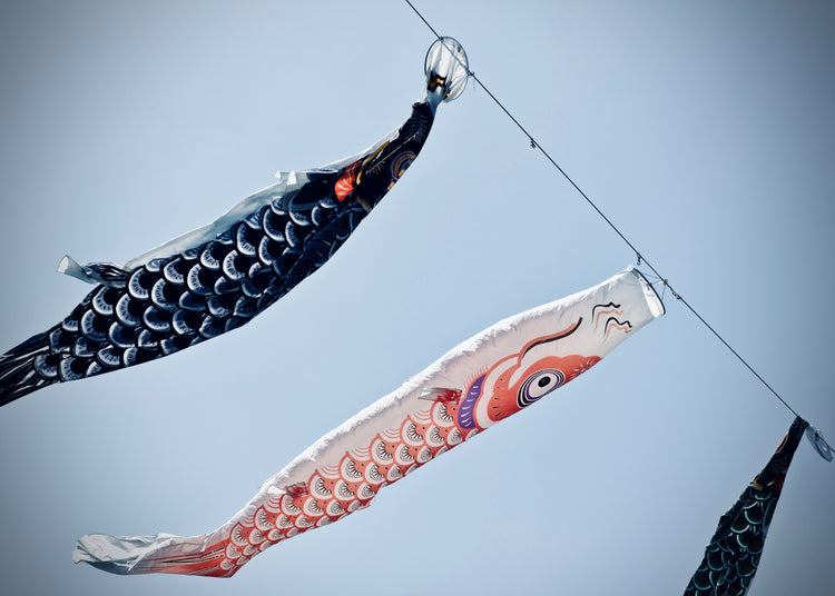 Vroeger werden de karpervlaggen op 5 mei opgehangen om de jongens een gezond leven te wensen. Tegenwoordig mogen de meisjes ook gewoon meedoen! Het is dan immer kodomo-no-hi en dat betekent kinderdag.