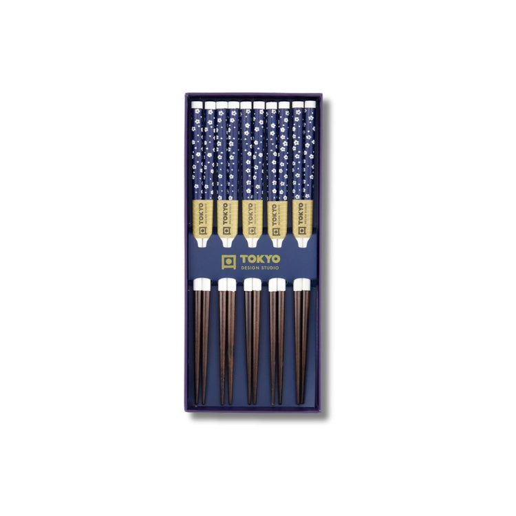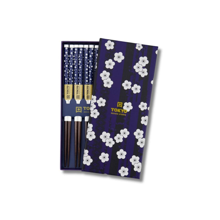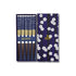Deze prachtige o-hashi, de Japanse naam voor eetstokjes, zijn gemaakt van bamboe en ze zijn versierd met blauw-witte ume (pruimenbloesem) patronen. Ze zitten verpakt in een prachtig bewaardoosje met daarop het overbekende golven patroon.