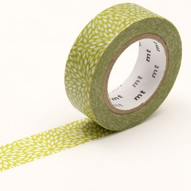 MT washi tape met een chrysanten patroon uitgevoerd in het groen.