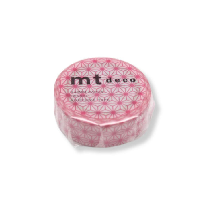 MT washi tape met het klassieke asanoha, hennepblad, patroon uitgevoerd in roze.
