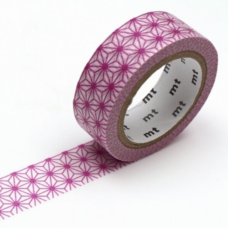 MT washi tape met het klassieke asanoha, hennepblad, patroon uitgevoerd in roze.